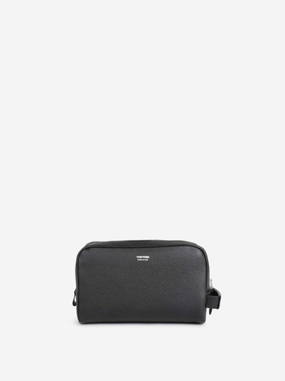Toiletry bag by Tom Ford Clutch / Hand bag Clutch Pebbled leather Made of soft grained leather Zipper closure A side handle One main compartment with two interior flat pockets Extra pocket with leather frame and front zipper Logo printed on the back in silver